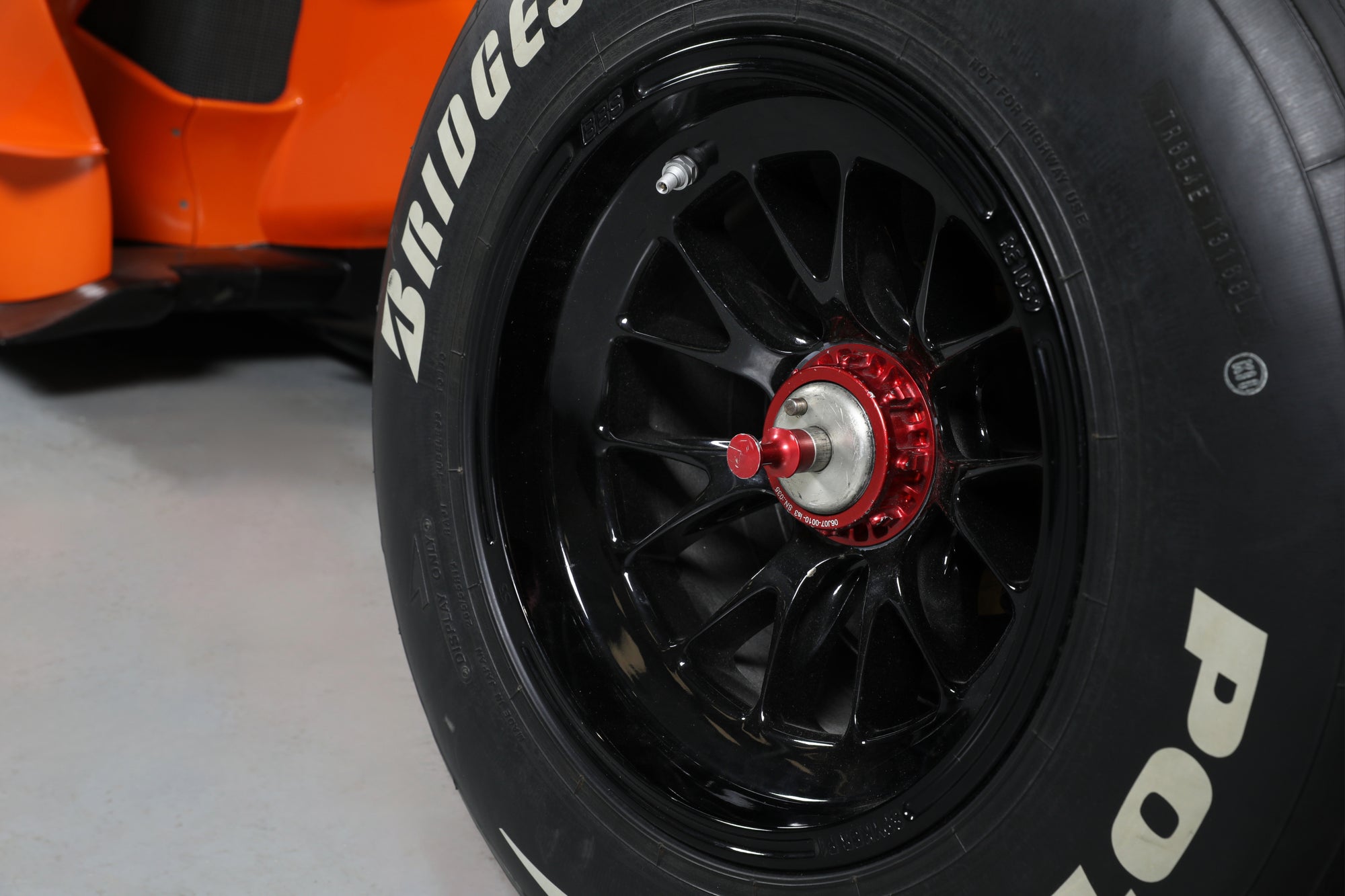 The car’s outboard suspension is mostly complete and retains real carbon-carbon brake disks and transport wheel nuts, which confirms the uprights and hubs are simplified real components. The front and rear wishbones are all real composite components and incorporate simplified brake ducts, with only the steering linkages and pushrods being metal parts with a carbon fibre look, which is preferred to ensure the show car can move more efficiently.