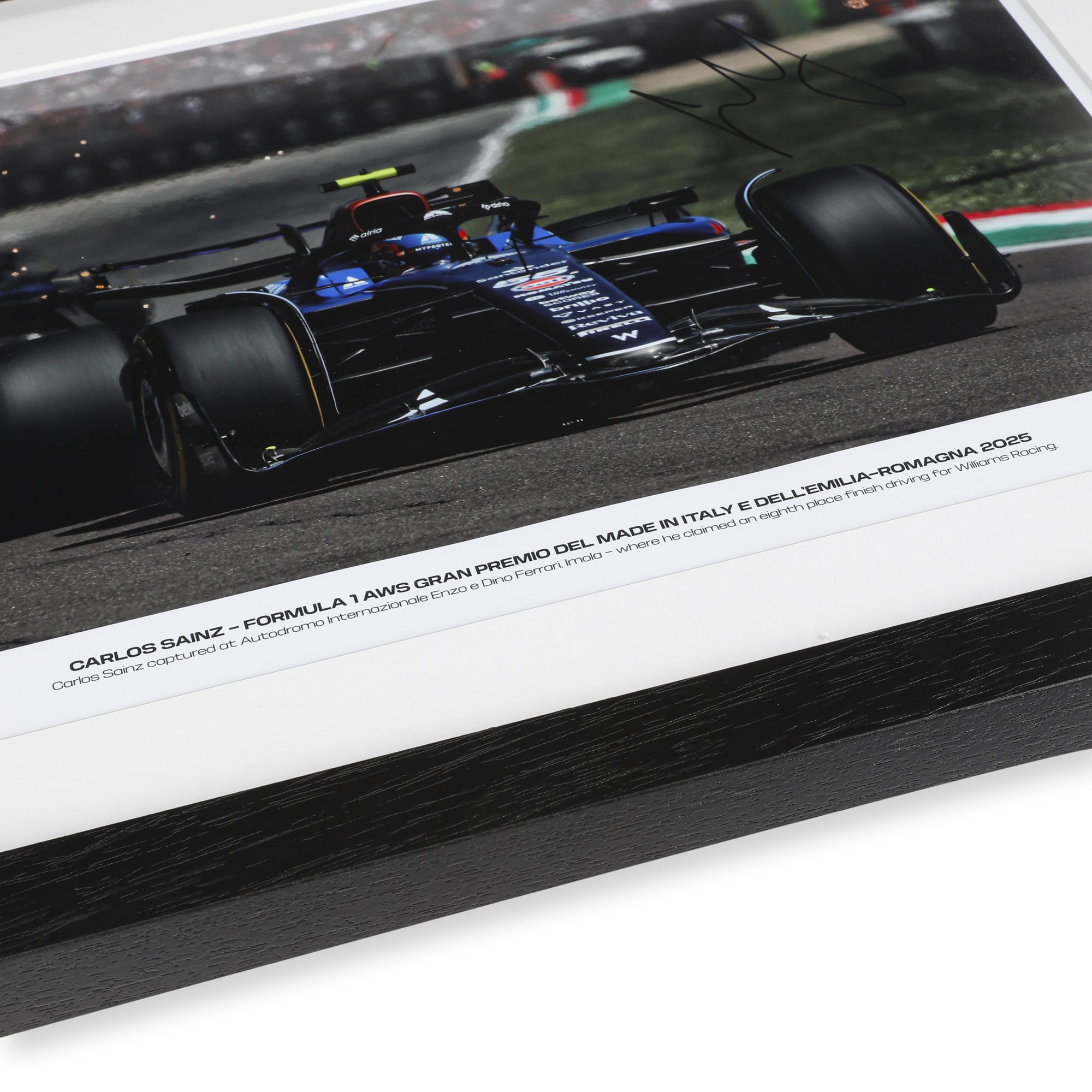 Capture the action! Own a photograph of Carlos Sainz out on track during the 2025 Emilia-Romagna Grand Prix, signed by the man himself
