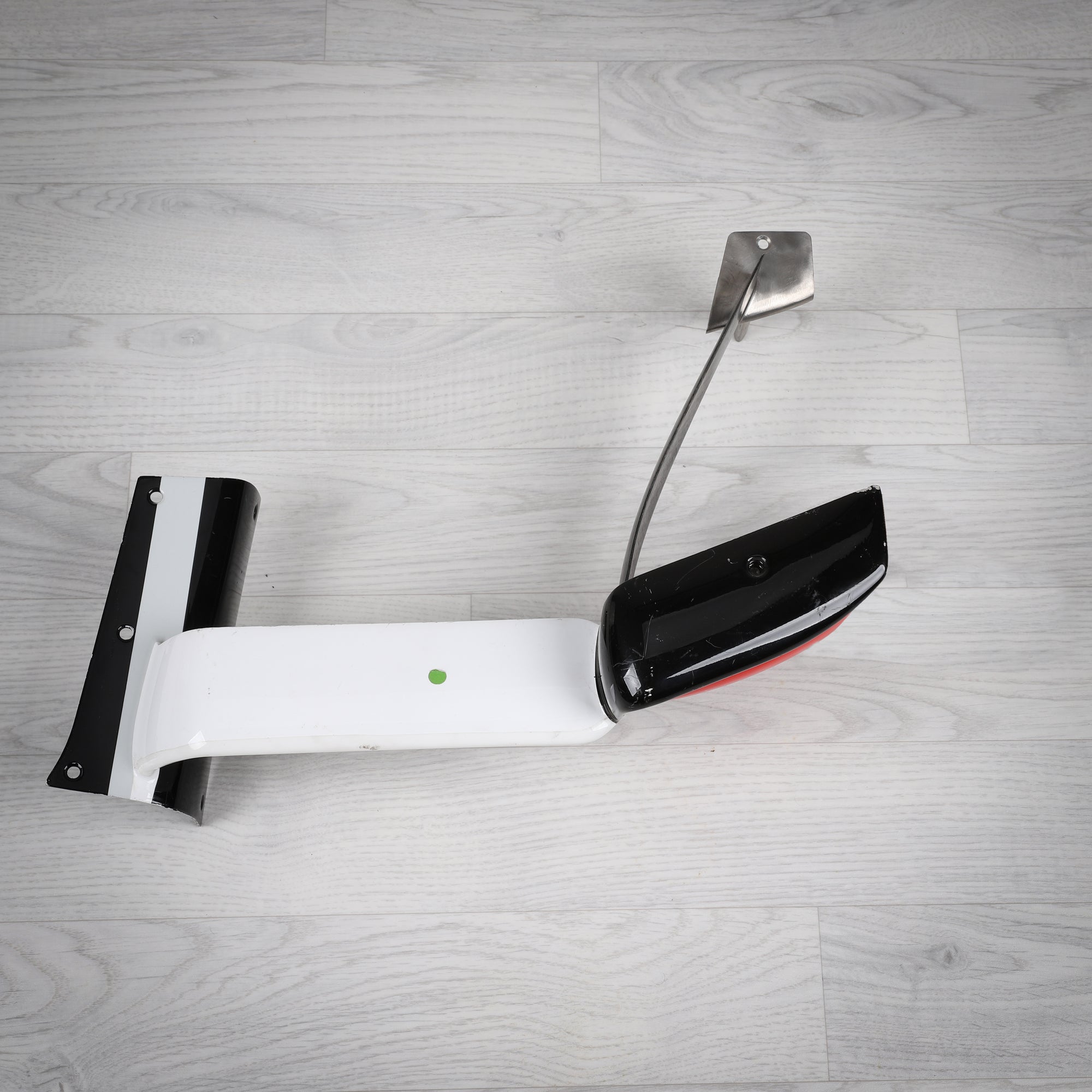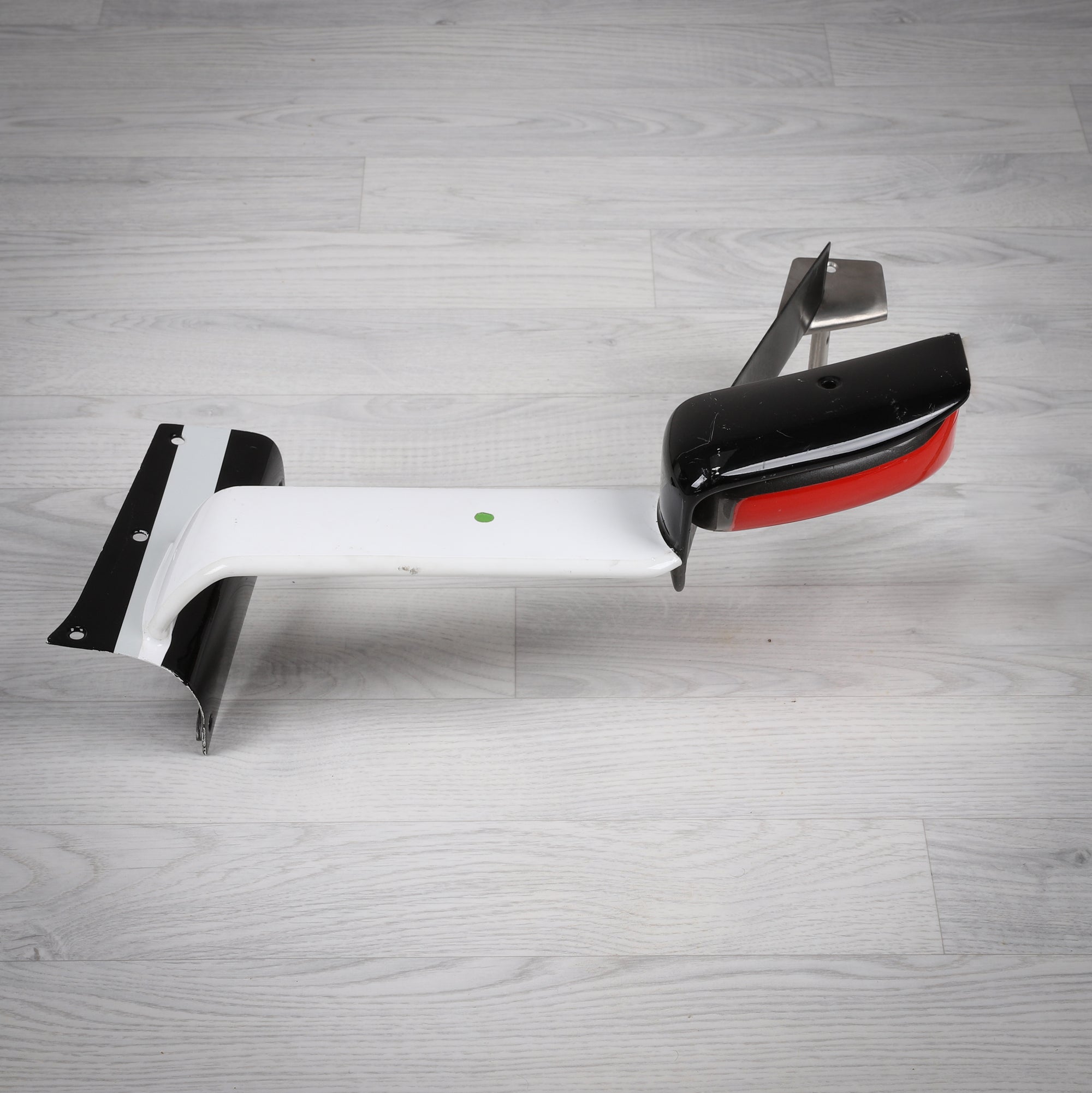 Finished with period-correct HAAS F1 Team detailing and showing authentic signs of race use, this component offers collectors a rare opportunity to own a functional piece of Formula 1 car architecture. Its compact size and distinctive form make it ideal for display in collections, offices, showrooms, or motorsport-themed interiors.