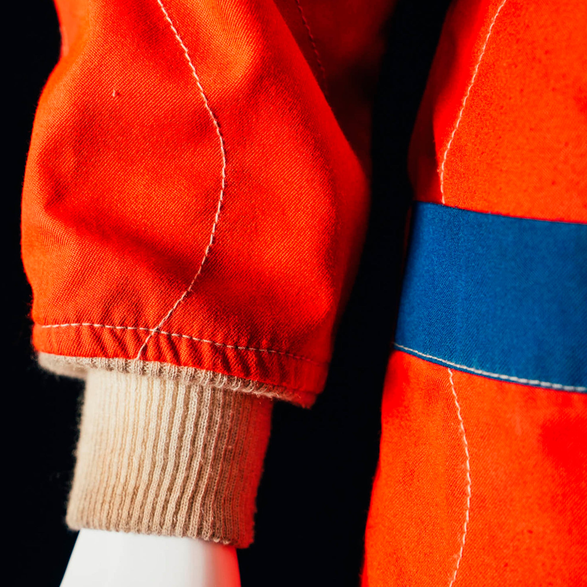 This exceptional piece recreates the period-correct racing attire of Jochen Mass, who competed for McLaren during the golden age of Formula 1 in the 1970s. Worn in the production of Rush, which chronicled the legendary rivalry between James Hunt and Niki Lauda, this suit captures the authentic style, sponsor detailing, and craftsmanship that brought the era’s racing heroes to life on screen.