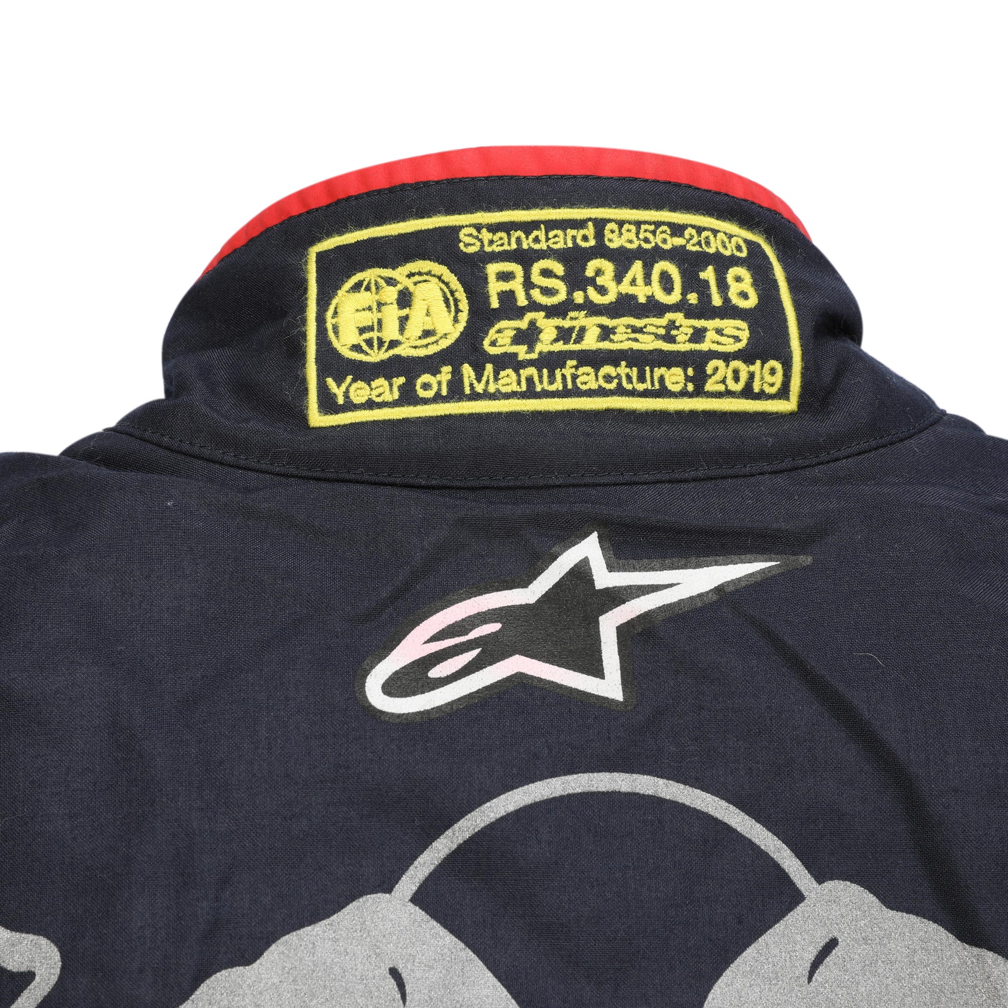 Featuring the striking navy, silver, and red colour scheme of Toro Rosso’s 2019 livery, it also carries the branding of notable sponsors from the era, including Moose Craft Cider, a Thai brand owned by the Yoovidhya family, further linking the suit to Albon’s national identity. Its provenance is impeccable: the suit was originally purchased directly from the team and comes with a Certificate of Authenticity signed by Franz Tost, Toro Rosso’s Team Principal.