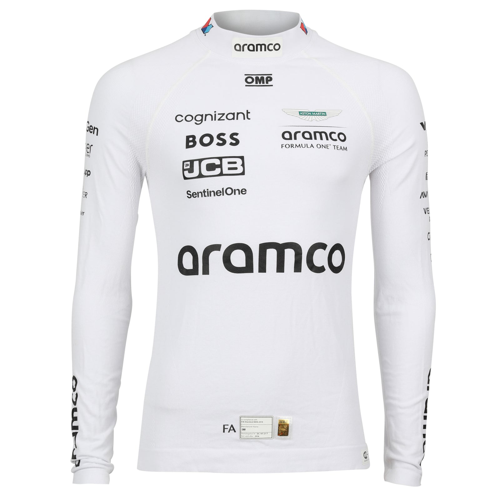 Add a rare piece of Grand Prix history to your collection with this white race-used Nomex base layer, worn by Fernando Alonso during the 2024 Formula 1 season with the Aston Martin Aramco Formula One Team.
