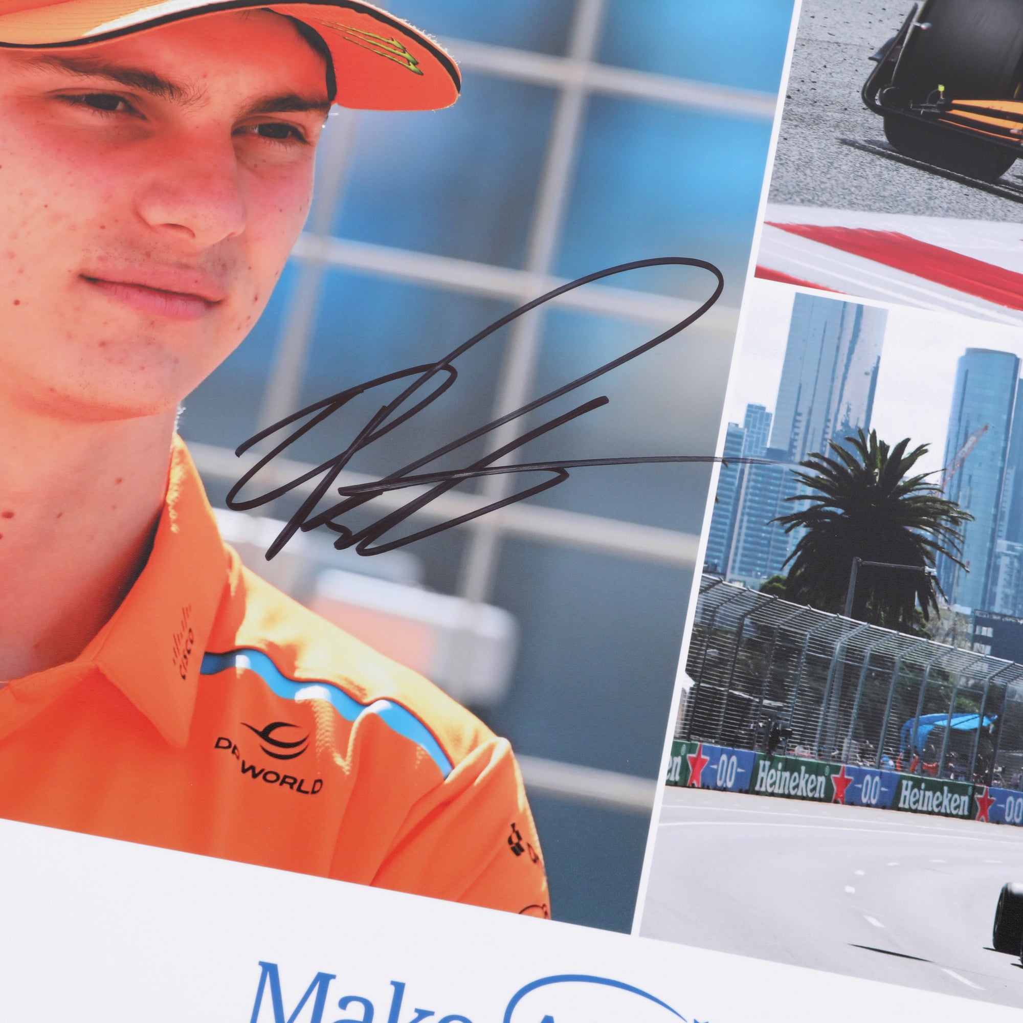 - Features an officially authenticated Oscar Piastri signature on a premium McLaren poster, celebrating the energy and potential of his growing F1 career.
