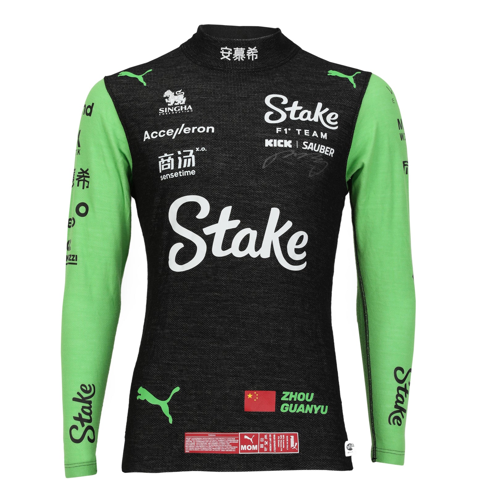 This is your chance to take home a genuine piece of Formula 1 history with this Grand Prix used nomex, worn and signed by Zhou Guanyu. The nomex was used during the 2024 Formula 1 season, racing for Stake F1 Team Kick Sauber.