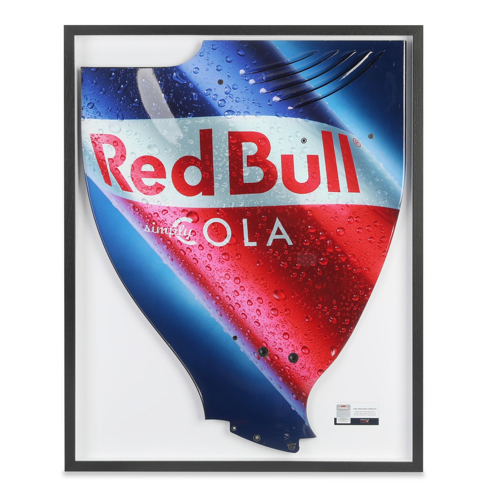The endplate features the iconic Red Bull livery with their special edition of Cola Red Bull printed on the endplate. Visible signs of race wear, including scuffs and scratches, add to its provenance, offering a tangible connection to the high-speed battles of the 2010 Formula 1 season.