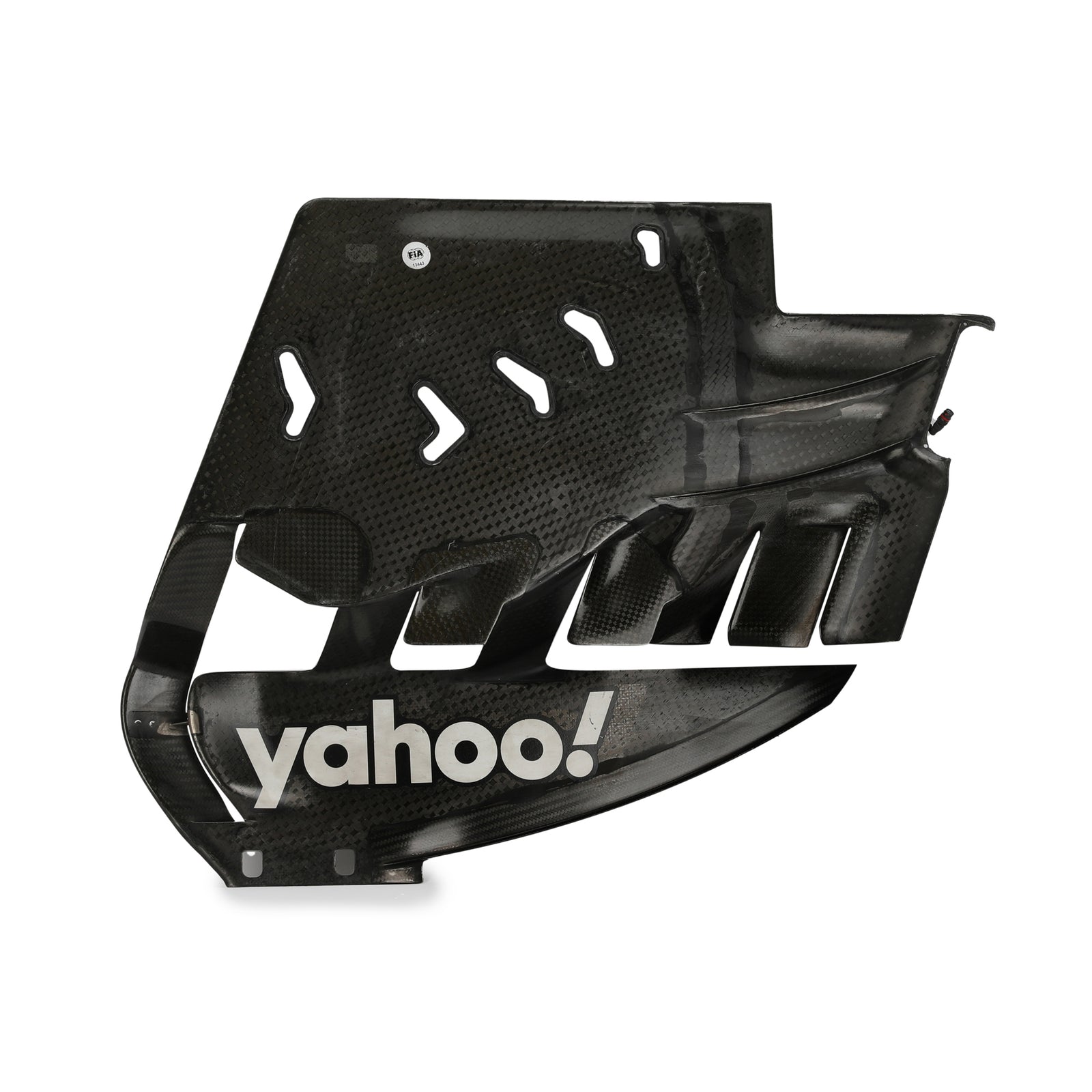 Constructed from lightweight carbon fibre, this left-hand endplate still displays authentic signs of track use, including scuffs and abrasions incurred under racing conditions. These markings make it unique and unrepeatable – each scar a story from the car’s life on the grid.