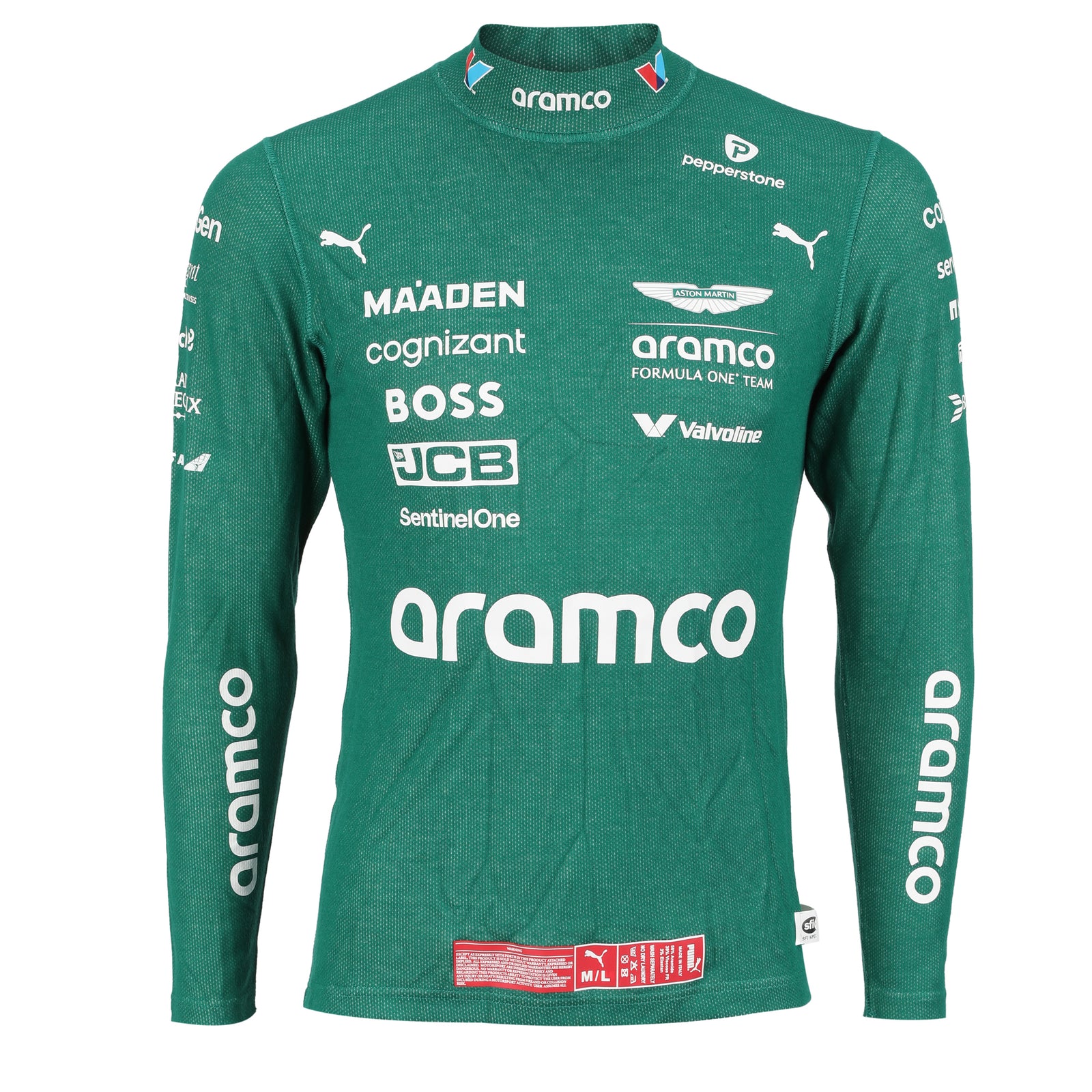 This genuine fireproof Nomex undershirt forms part of Aston Martin’s official driver racewear, engineered to meet the strict FIA safety and performance regulations required at the pinnacle of motorsport. Featuring Aston Martin Aramco Formula One Team branding, partner logos, and season-specific detailing, it reflects the craftsmanship and technical precision behind the team’s on-track operations.