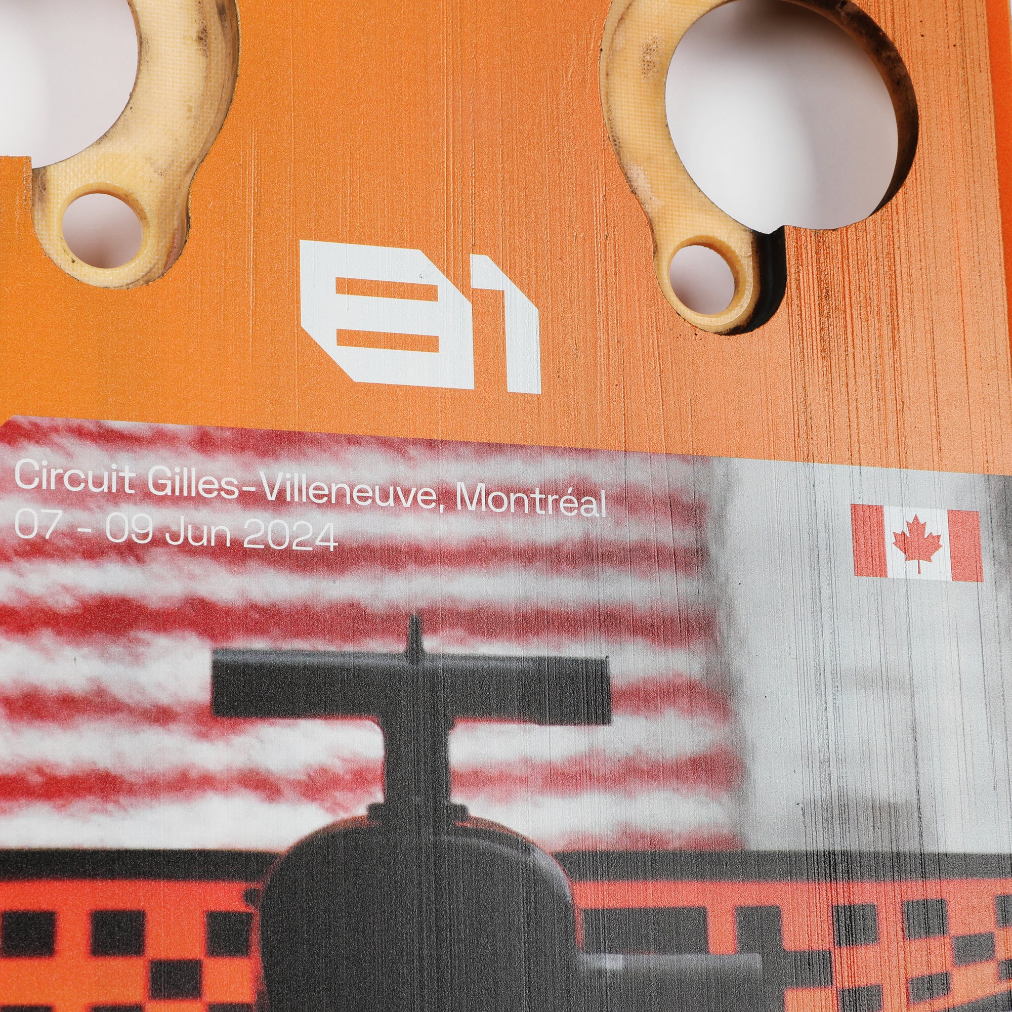 This plank once ran on the underneath of Oscar Piastri’s MCL38, driven at the ninth round of the 2024 season. Oscar Piastri drove to fifth at Circuit Gilles Villeneuve, Canada, with this authentic component being part of the moment.