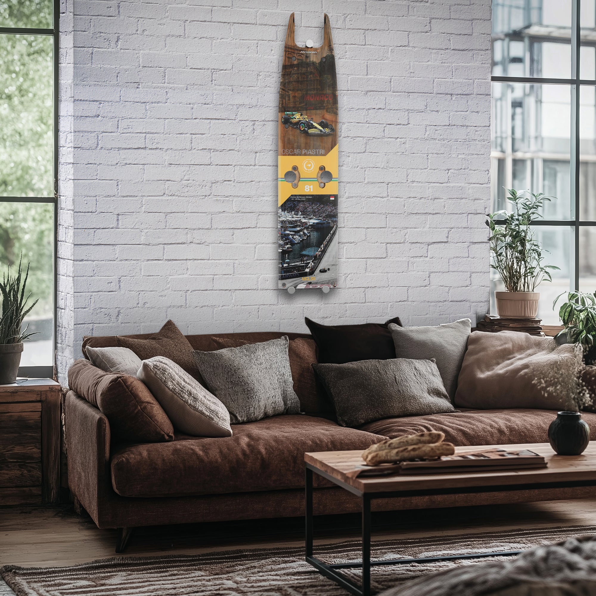 Own an authentic piece of Oscar Piastri’s 2024 F1® season with this unique piece of wall art, crafted using a race used skid block plank used at the 2024 Monaco Grand Prix weekend.
