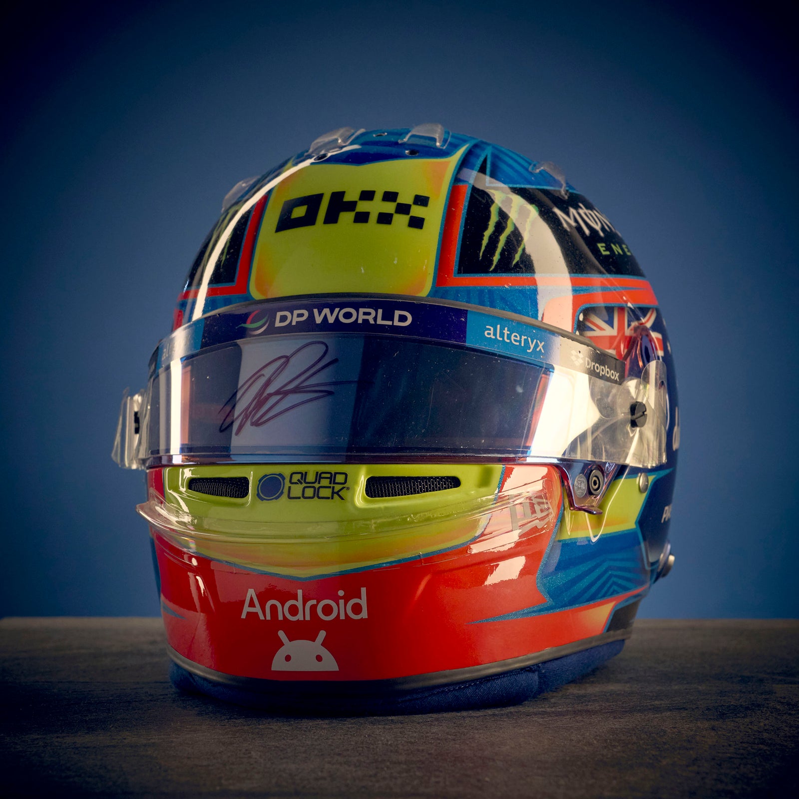 The decision to donate the race-used 2024 Bahrain International Circuit race helmet has been made to raise funds directly for a cause close to the driver's heart. Earlier this year, Piastri became an ambassador for My Room, the Australian children’s cancer charity that is volunteer-led and dedicated to supporting families impacted by cancer; while funding vital services and research to bring hope to young patients and their loved ones. Every penny raised by this helmet on F1® Authentics Austin GP Auction will go towards supporting this worthy cause.
