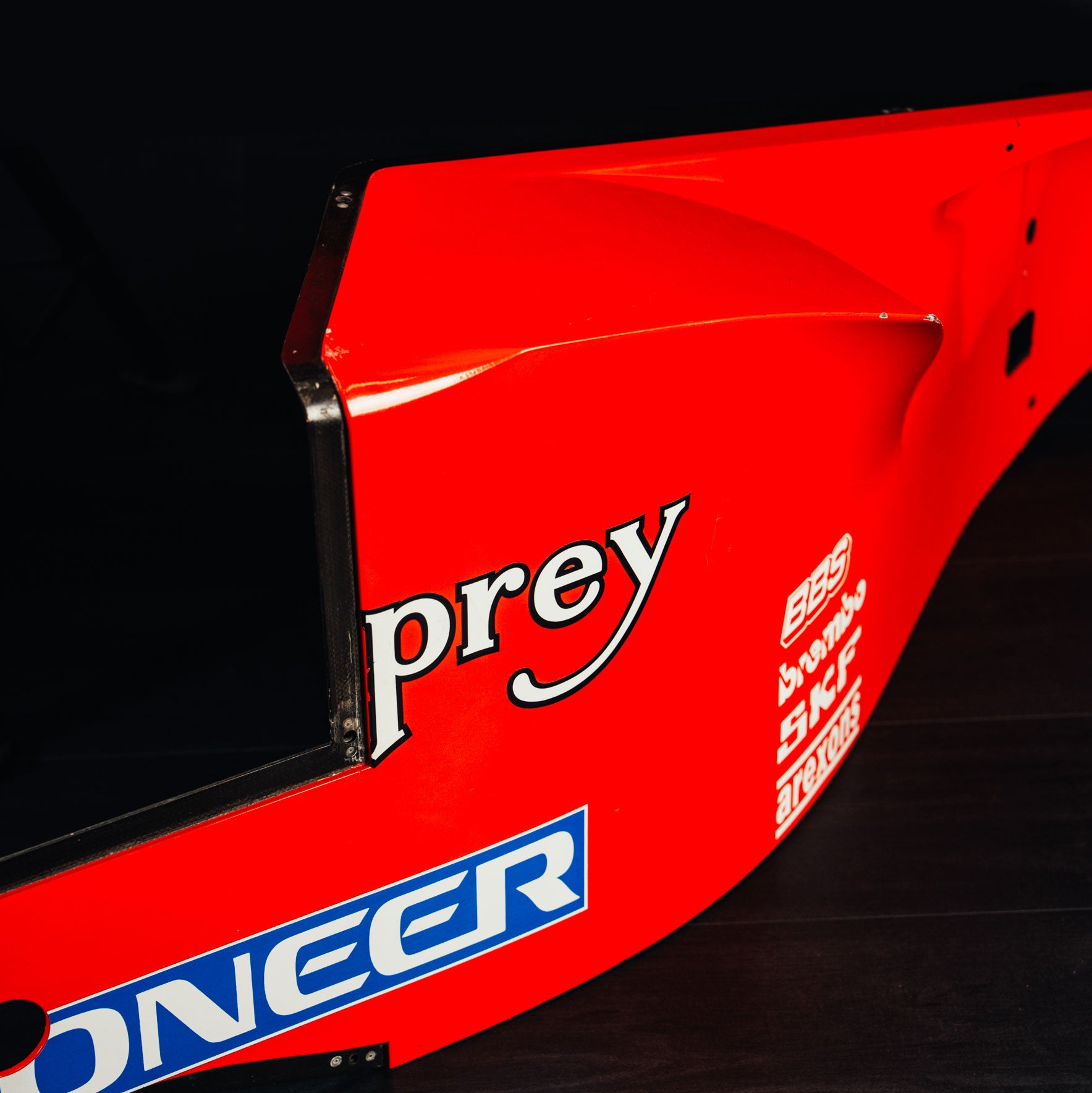 Constructed from lightweight carbon fibre and finished in Ferrari’s iconic Rosso Corsa livery, these large-format components deliver exceptional display presence. Their sculpted surfaces and period-correct detailing reflect the aggressive aerodynamic development race that defined late-1990s Formula One.