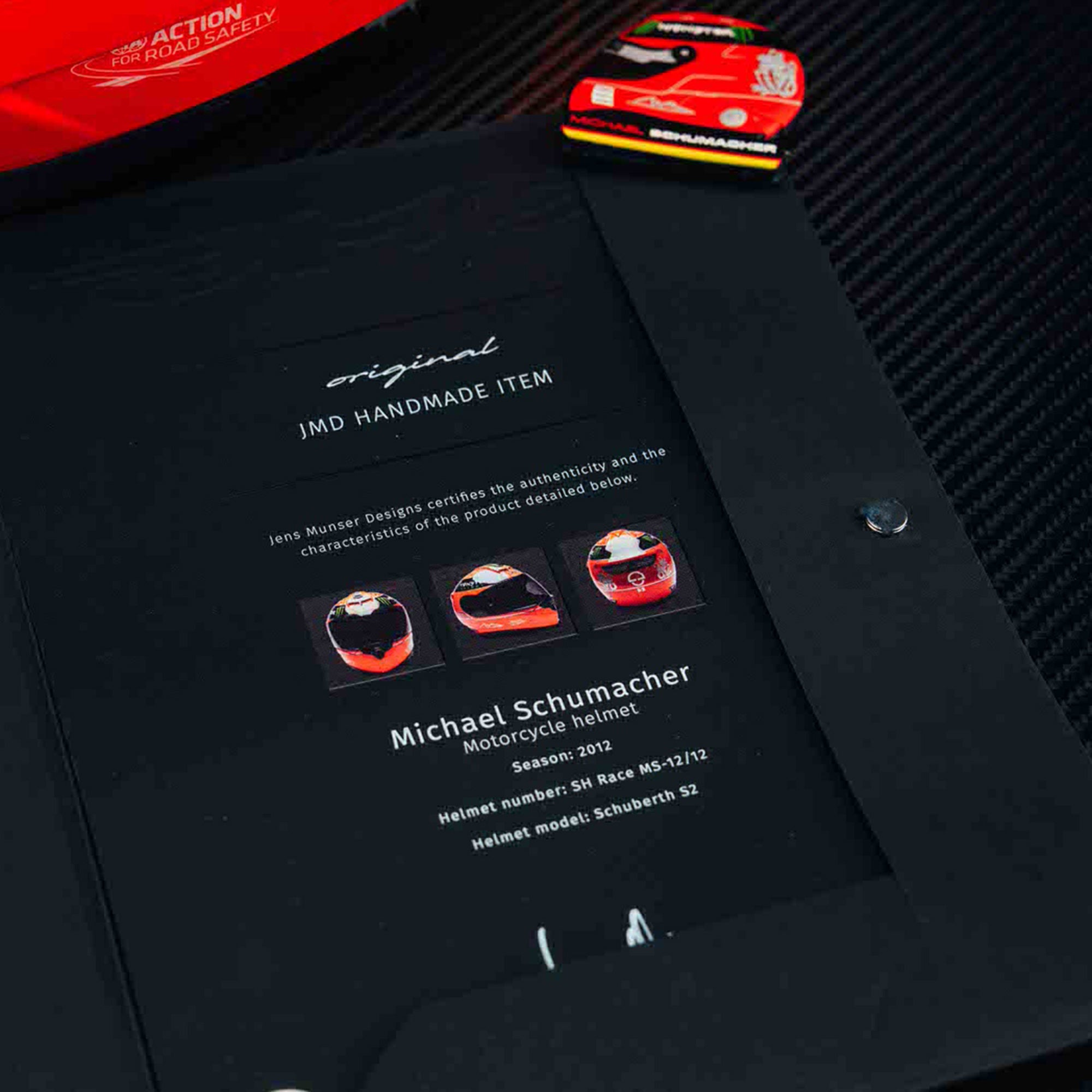 An extraordinary piece linked to one of motorsport’s greatest names, this Michael Schumacher 2012 motorcycle helmet offers collectors something truly unique. Worn by Schumacher himself and accompanied by a signed Certificate of Authenticity, this helmet represents a lesser-seen chapter of his competitive life away from Formula 1®.