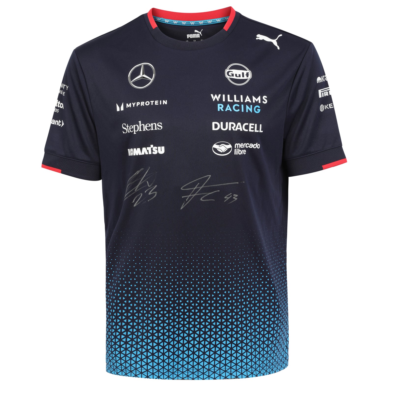 Crafted for discerning collectors, the shirt showcases genuine signatures on official 2024 teamwear, offering a refined tribute to the evolving story of Williams Racing. A distinguished piece that highlights the team’s spirit, ambition, and the unforgettable partnership of two drivers at defining points in their careers.
